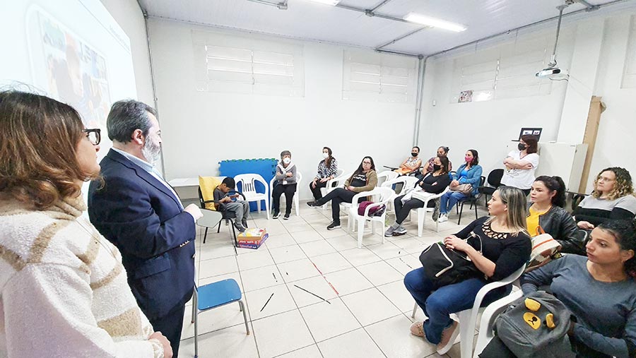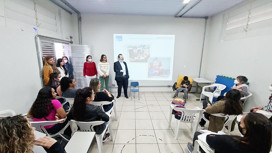 Durante algumas horas, Berenice teve a oportunidade de conhecer mais de perto o trabalho desenvolvido pela entidade e acompanhar algumas atividades que aconteciam no local, como as aulas de iniciação esportiva na quadra poliesportiva coberta.
