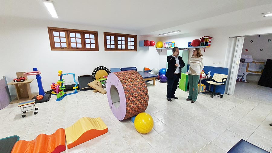 Também visitou as dependências internas e externas da entidade, que atende cerca de 300 famílias com pessoas com deficiência intelectual.