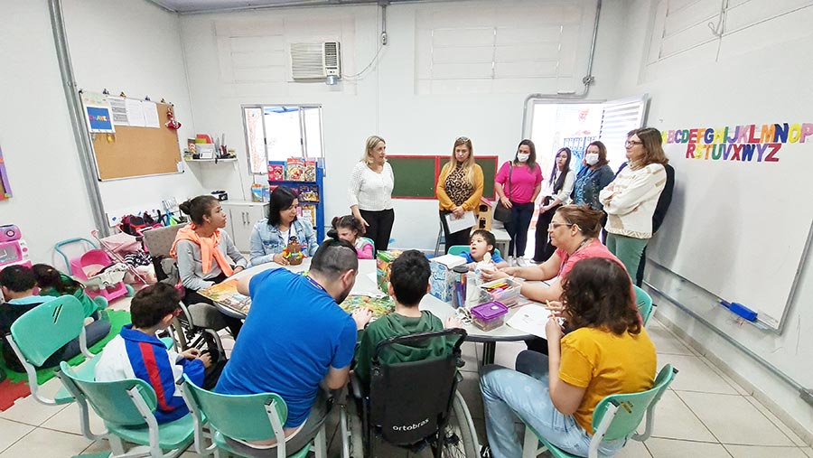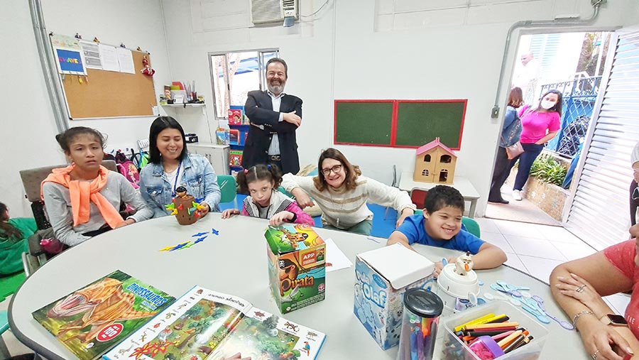 Também visitou as dependências internas e externas da entidade, que atende cerca de 300 famílias com pessoas com deficiência intelectual.